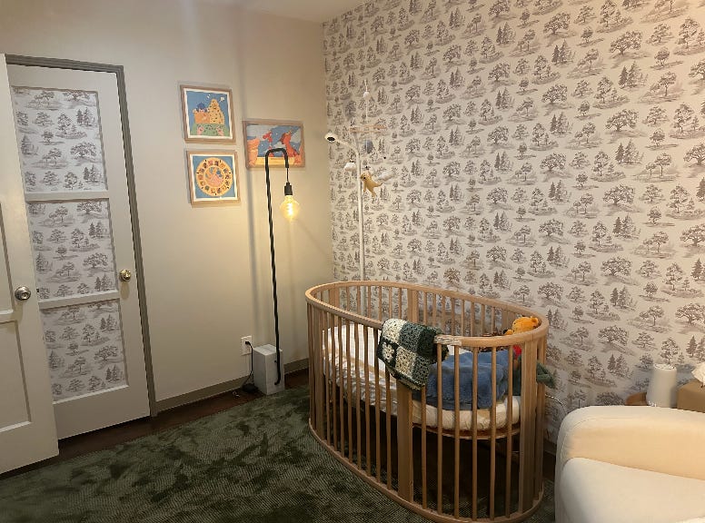 Annette, my mother-in-law, is a Pied Piper of children. I’ve been at family holidays where Annette disappears for hours—off building couch forts with seven-year-olds, or dressed as a matching pink princess with my niece. If anyone was more excited by Felix’s arrival than we were, it was Annette. He was her bambino, her principe. A fist in his mouth? A mark of genius. A head swivel at three weeks? Proof of his future athleticism. She’d scoop him up and lead him on a grand tour of our small house like a realtor with her most important client. This is the Great Room. This is the Primary Bathroom. This is chiaroscuro. This is a Minnotti, a very important furniture designer.