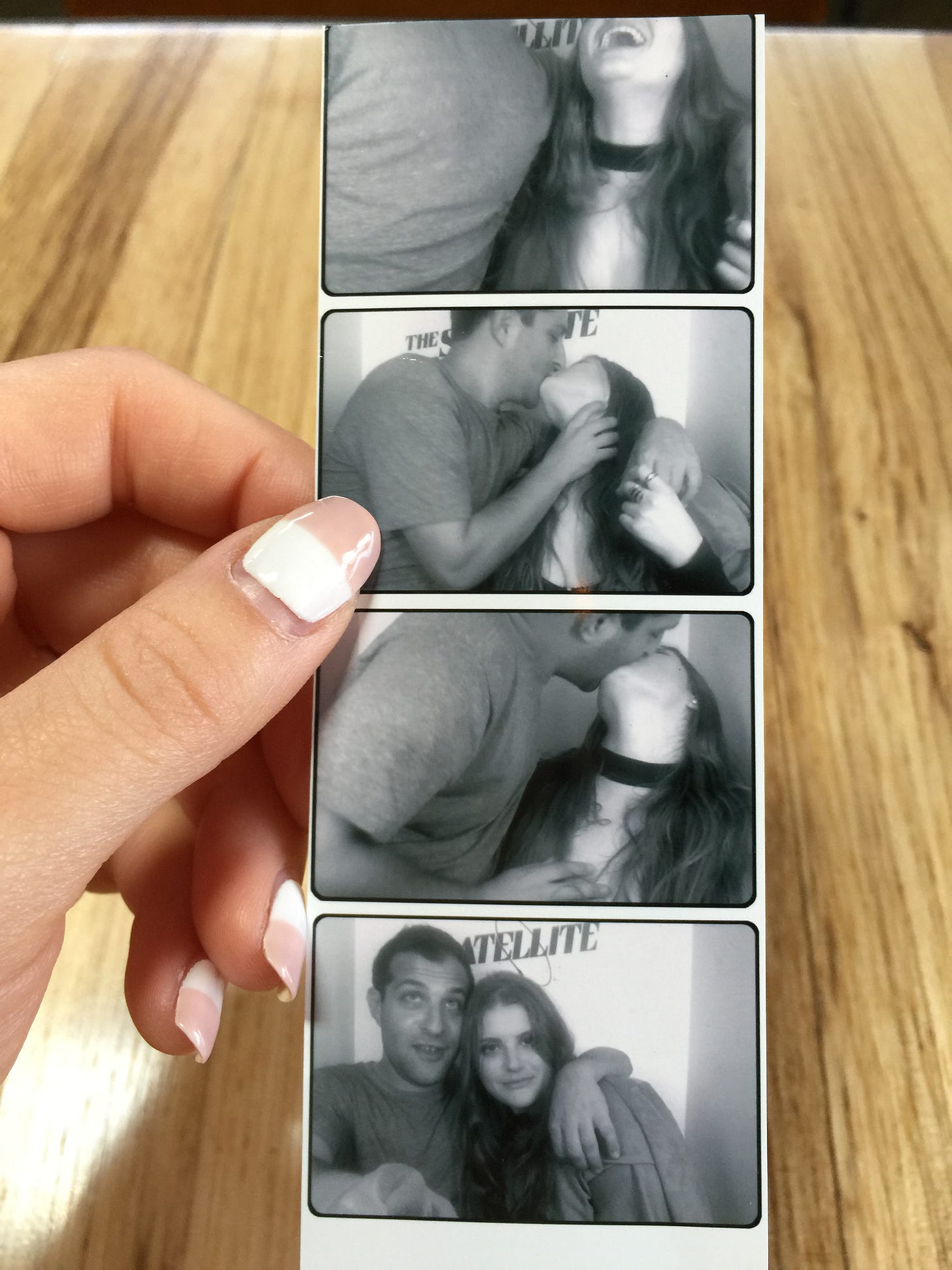 Photo Booth strips are played-out, but so what? By the time we got to the Silver Lake Lounge many hours into our first date, I was half in the bag and mostly in love. Usually, you get four mugshots in slow collapse. Frame one: your practiced, bathroom-mirror smile. Frame two: the confused “should there be a flash?” look. Frames three and four: some failed stab at spontaneity. But ours looked like the night felt—slippery, stupid joy. The absurd, electric discovery that you’re smack in the middle of your life changing forever.