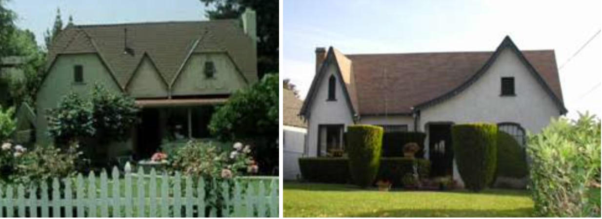 Best of all (I would say when I played tour guide), E.P. Janes wasn’t actually an architect but a grifter, a high-school dropout who roamed the West peddling miracle cures and defective mail-order tires. Arriving in Altadena one step ahead of a federal indictment, Janes was immediately besotted by its cheap land and easily-obtainable building permits. Tweaking blueprints filched from the Central Library, Janes built 100 houses in (his words) “the timeless Norman style,” with nested “cat-side gables” and Cotswold roofs. He took out a two page ad in the Times that screamed WHY PAY RENT? in 100-point font. A deed could be yours for $150 cash down. No escrow charges. Taxes fully paid.